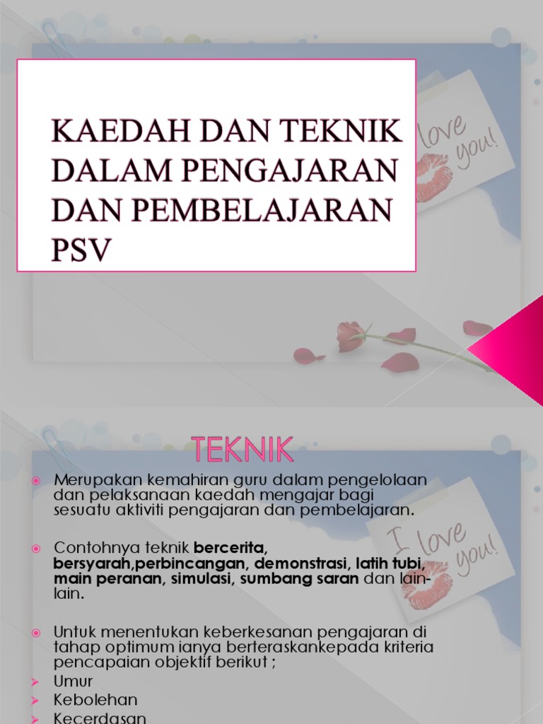 Kaedah Pengajaran Dan Pembelajaran Guru from s1.studylibid.com show full abstract pengajaran, dan bahan bantu mengajar yang digunakan semasa proses pengajaran dan pembelajaran. Perangkat pembelajaran mempunyai misi agar segala aktivitas guru dalam pembelajaran bisa lebih efisien dan efektif serta sukses. Rencana pelaksanaan pembelajaran ini digunakan oleh guru sebagai pedomandalam melaksanakan proses pembelajaran di kelas. Penggunaan ict dalam proses pengajaran dan pembelajaran (pdp) dapat membantu guru dan murid meningkatkan kemahiran dalam bidang teknologi kini kerana mereka akan diberikan pendedahan terhadap pelbagai alatan dan bahan mengenai ict seperti komputer, lcd, cd, pendrive, perisian. Antara matlamat utama berlakunya pengajaran ialah untuk melahirkan insan yang seimbang dan harmonis, berilmu pengetahuan serta berakhlak mulia. Sebagai contoh, peranan guru telah berubah dari instructor ke. Strategi pengajaran dan pembelajaran pendekatan berpusatkan murid strategi p&p perlulah berpusatkan murid untuk membolehkan mereka berinteraksi dan menguasai kemahiran belajar melalui pengalaman sendiri murid dapat membina keyakinan berbahasa kepelbagaian teknik. Guru perlu menguasai dan mengetahui pelabagai kaedah pengajaran dan pembelajaran serta menggunakannya sesuai dengan aras pengetahuan pelajar yang hendak diajar.